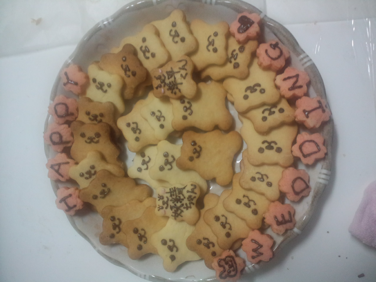 チョコ味も焼いたけど、白のチョコペンがいつまでも乾かなくてラッピング出来なかったので諦めまひた。